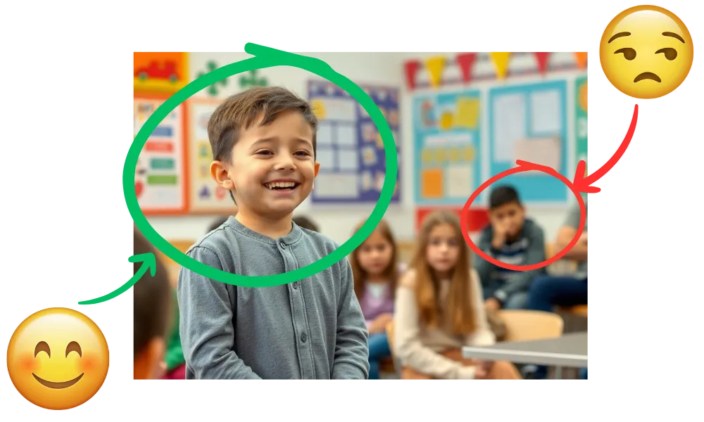 One confidently explaining his little business to a group of adults, eyes shining with pride.